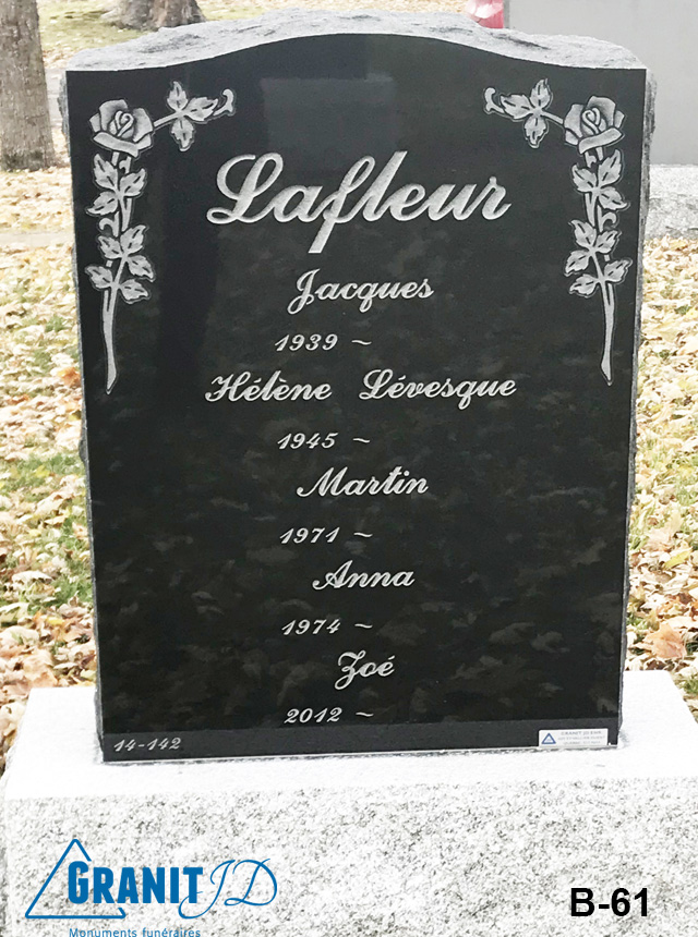 Incluant base de granit grise et 1ère gravure (détails en magasin).