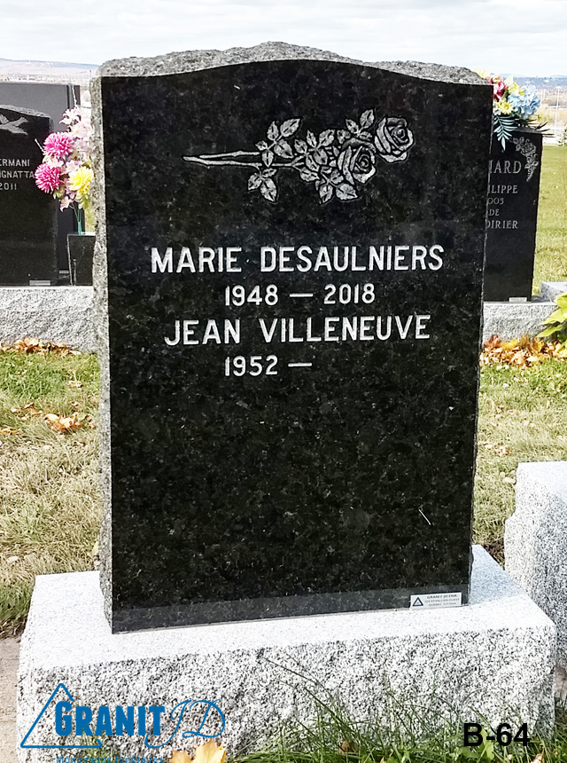 Incluant base de granit grise et 1ère gravure (détails en magasin).