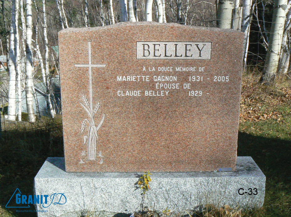Incluant base de granit grise et 1ère gravure (détails en magasin).