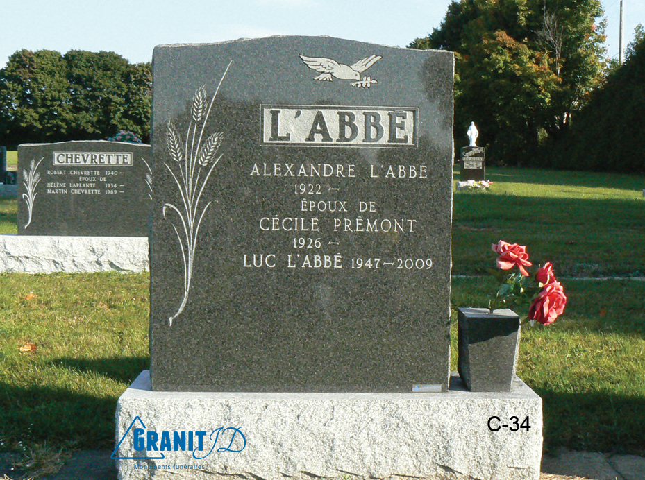 Incluant base de granit grise et 1ère gravure (détails en magasin).