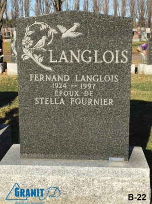 Incluant base de granit grise et 1ère gravure (détails en magasin).