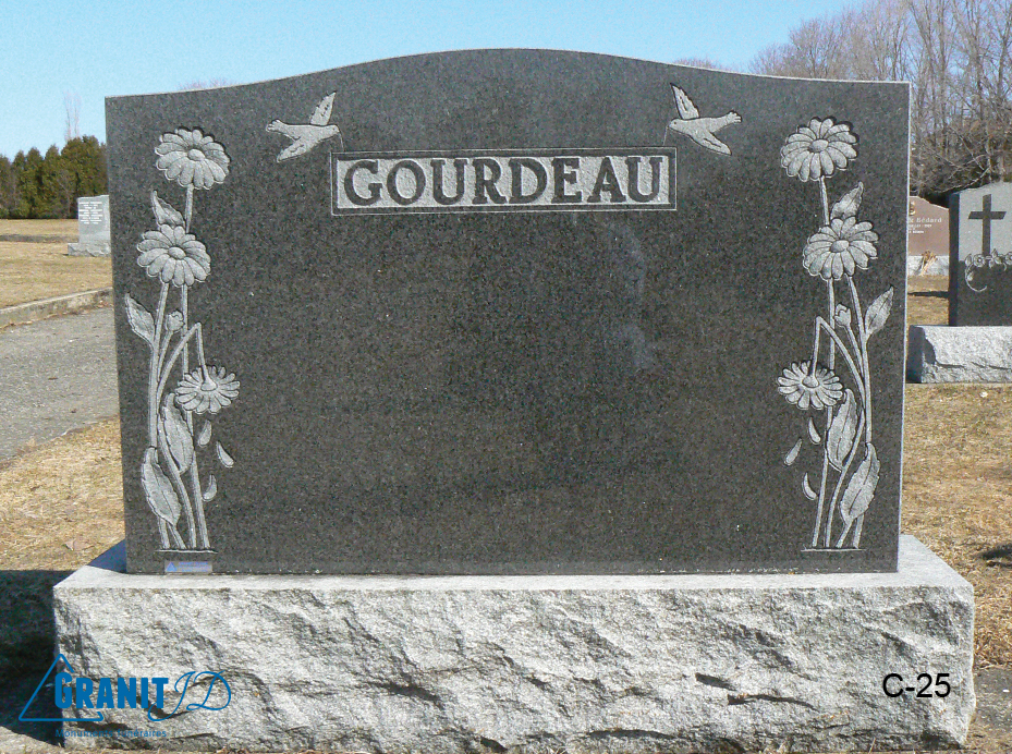 Incluant base de granit grise et 1ère gravure (détails en magasin).